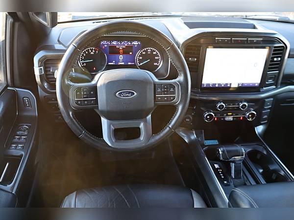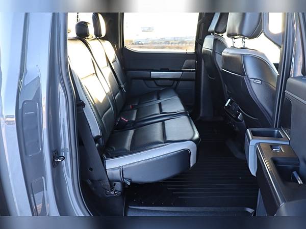 Exterior is Lead Foot Gray, Interior is Black/Gray Leather, dual heated 10-way power bucket seats in front with center console, 60/40 rear folding bench, power adjustable pedals, power windows and power door locks, power/heated tilt/telescoping wheel, cruise control, air conditioning, electric rear window defrost, digital dual climate control, technology package, SYNC 4 with 12" touch screen, navigation, AM/FM stereo, Sirius satellite radio ready, driver's information center, Apple Car Play, Android Auto, Bluetooth capabilities, multi-function steering wheel controls, auto dimming rear view mirror, lane departure, pre-collision assist with AEB, compass/temperature/mileage display in dash, curb-view back up camera, parking assist, remote entry, door code entry, remote start, traction control, hill start assist, 110v outlet, fog lights, side air bags, power/heated folding mirrors with turn signals, power sliding rear window, locking tailgate, dark tinted glass, tow package with receiver and trailer wiring, factory electronic brake controller, pro trailer back up assist, step boards, spray in bed liner, sport package with color matched bumpers, grille and trim and LED bed lighting,